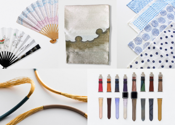 西陣織の帯やベビーシューズや天保年間から続く老舗の京扇子、また衣装装束にも使われてきた純金糸を使用したアクセサリー、染め屋さんのApple Watchバンドや、京都の水をテーマにしたバッグやストールなど、現代の暮らしに合わせてアレンジされた品々をお楽しみください。