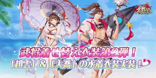 今回実装されるのは、「趙雲」「大喬」2人の着せ替え衣装です。夏にふさわしい衣装となっておりますので、ぜひお手に取っていただければと幸いです。