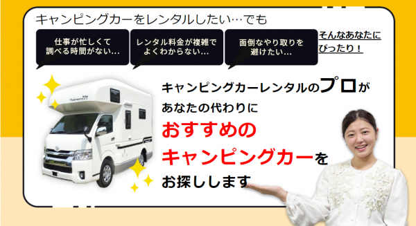 日本最大級のキャンピングカーレンタルサービスを運営しているので、プロならではの提案をさせていただきます