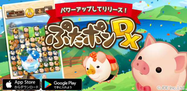 ジェーオーイーがマッチ3パズルゲーム「ぶたポンDX」を日本国内向けにリリースしました。