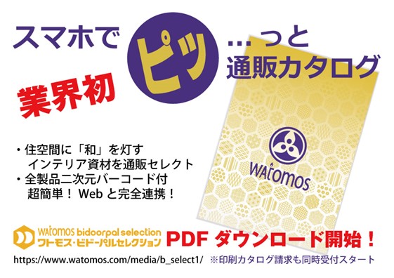 ※2.「watomos(ワトモス)」は、BIDOOR(ビドー)が提唱する新しいインテリアコンセプト、およびカタログシリーズの名称です。インテリアの中の均整のとれた「和」在り方を、小さな金物部品の側面から提案し、素材・色・形状の 3 つの視点で洋室化に共存できる製品やサービスの模索、企以降画立案などを行っています。