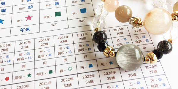 また、代々続く占い家系に生まれ10代から鑑定している実績とタロットで培った直感から、独自の占い(琉球推命)で生年月日から運勢の流れを見て、世界にたったひとつだけのオリジナルのブレスレットをお作り致します。