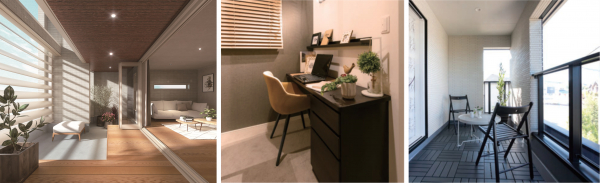 今回販売を開始する『Skyshare』は、住宅が密集した都市部の限りあるスペースでも自然の風や光を感じ、プライベートを確保しながら、のびのびくつろげる空間のある住宅を提供したいというコンセプトから多層階住宅の新ブランドとして誕生しました。現在はコロナ禍で自宅時間も増えていますが、テレワーク導入が進み、コロナ終息後も変化した働き方はある程度定着することも予想されます。住居は今までの“自宅”の役割だけでなく、仕事場としての空間であることも求められる時代が続くと考えられます。