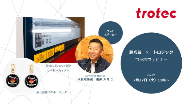 レーザー加工機メーカーのトロテック(本社:欧州オーストリア)は、2021年7月27日(火)11時~、株式会社 藤巧芸とのコラボウェビナーをオンラインで開催します。