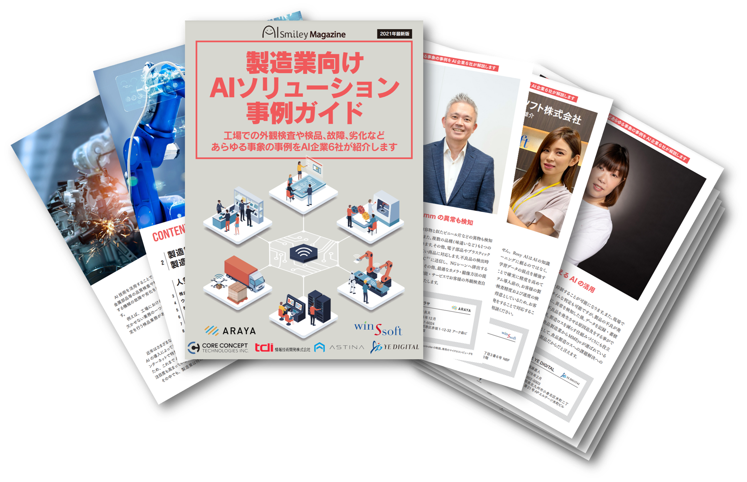 人工知能を搭載したサービスの資料請求ができるAIポータルメディア「AIsmiley」を運営するアイスマイリー(東京都渋谷区、代表取締役:板羽晃司)は、製造業向けのAIソリューションの導入事例をまとめた「製造業向けAIソリューション事例ガイド」を2021年7月29日に公開します。工場での外観検査や検品、故障、劣化など、あらゆる事象の事例をAI企業6社が紹介します。