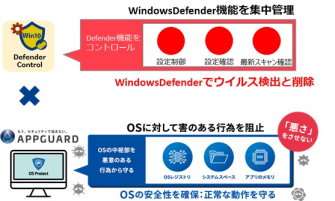 OS プロテクト型の次世代型アンチウイルスソフト「AppGuard」とDefenderControlを併用することで、より強固なエンドポイントセキュリティを実現します。