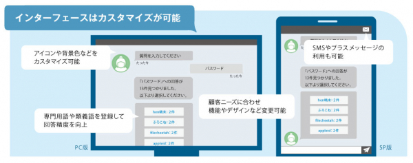 また、チャットボットのインターフェースも、利用用途に合わせて細かにカスタマイズが可能です。