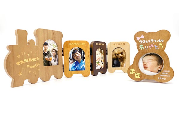 ベビーフォトフレームにレーザー加工やフルカラーでオリジナルプリント!