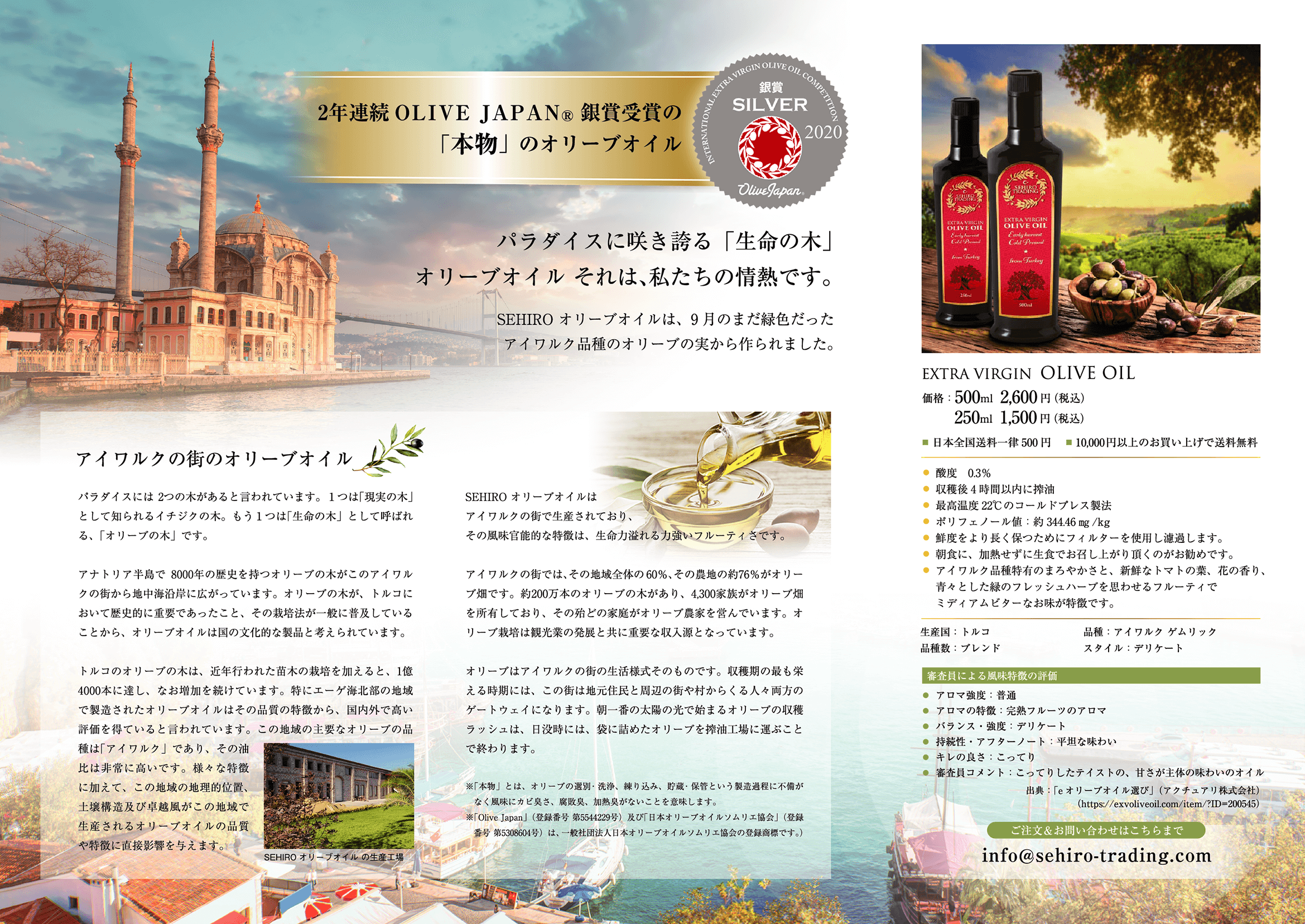 SEHIRO Trading 合同会社ではトルコと日本の架け橋として、日本の皆さまに上質なオリーブオイルをお届けします。