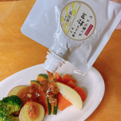 コロナ禍で、自宅でご飯を食べることが多くなっています。今まで「ごはんのおとも」は多くありましたが、当社が提供する「おかずドレッシング」は「おかずのおとも」であり、おかずにかけるためのソース・ジュレです。家事をシェアする家庭が増えている中、毎日の食事をいかに短時間で用意し、且つ美味しく飽きがこないようにするのは大変です。また、家族それぞれ味の好みが違う場合もあり、食事には頭を悩ませることも少なくありません。
