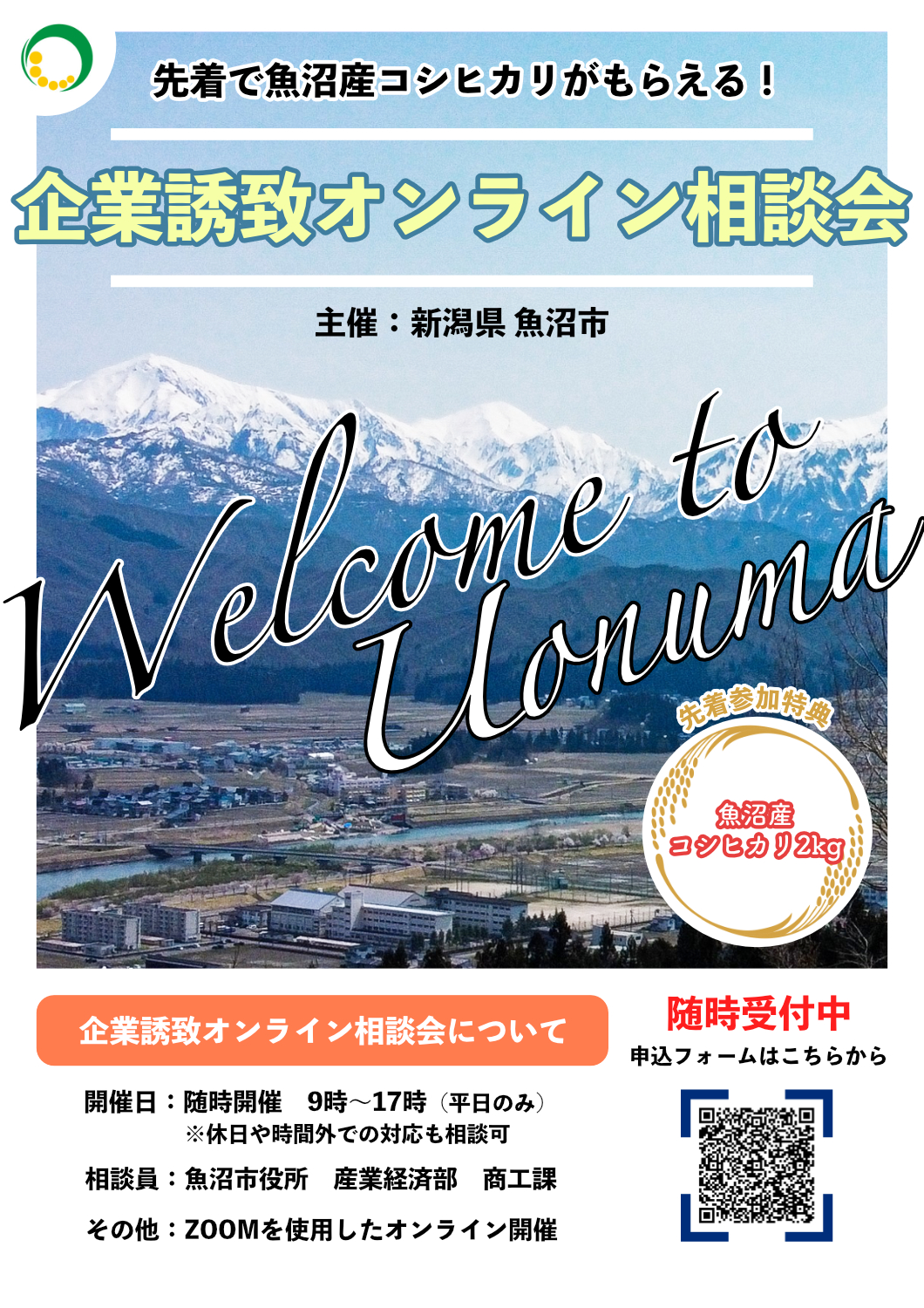 新潟県魚沼市では地域経済活性化を目的に企業誘致に向けた取り組みを行なっています。コロナ禍での新しい取り組みとしてオンラインツールを活用し立地を希望する事業者に対して必要な情報を届けたいという思いから今回の企画がスタートしました。