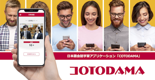 COTODAMAは、文法からではなく「声」から「言葉」を身に付け、会話の”こんにちは” から日本語を学習できるアプリです。