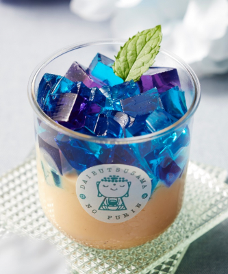 青紫色のゼリーはフルーティーなパープルメロン風味で、
