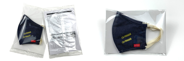 商品は1店ずつ個装してお届けします。台紙の裏面には使用上の注意点、洗濯方法、品質表示、販売社名が記載されているため、企業様やクリエイターの方のオリジナルグッズのひとつとして、そのまま販売や配布する場合に便利です。オプション(有料)でテープ付きOPPへの変更も可能です。