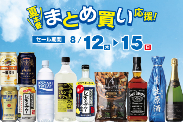 全国に182店舗で酒の専門店をチェーン展開する株式会社リカーマウンテン(本社:京都市)は、8月12日(木)~15日(日)の4日間、深夜営業店舗など一部を除く店舗で「夏本番 まとめ買い応援!セール」を開催いたします。