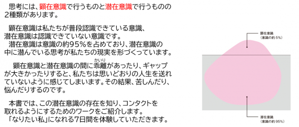 1日1個のワークをたった7日間するだけで、あなたの潜在意識は変化し、望み・願い・夢が叶います。