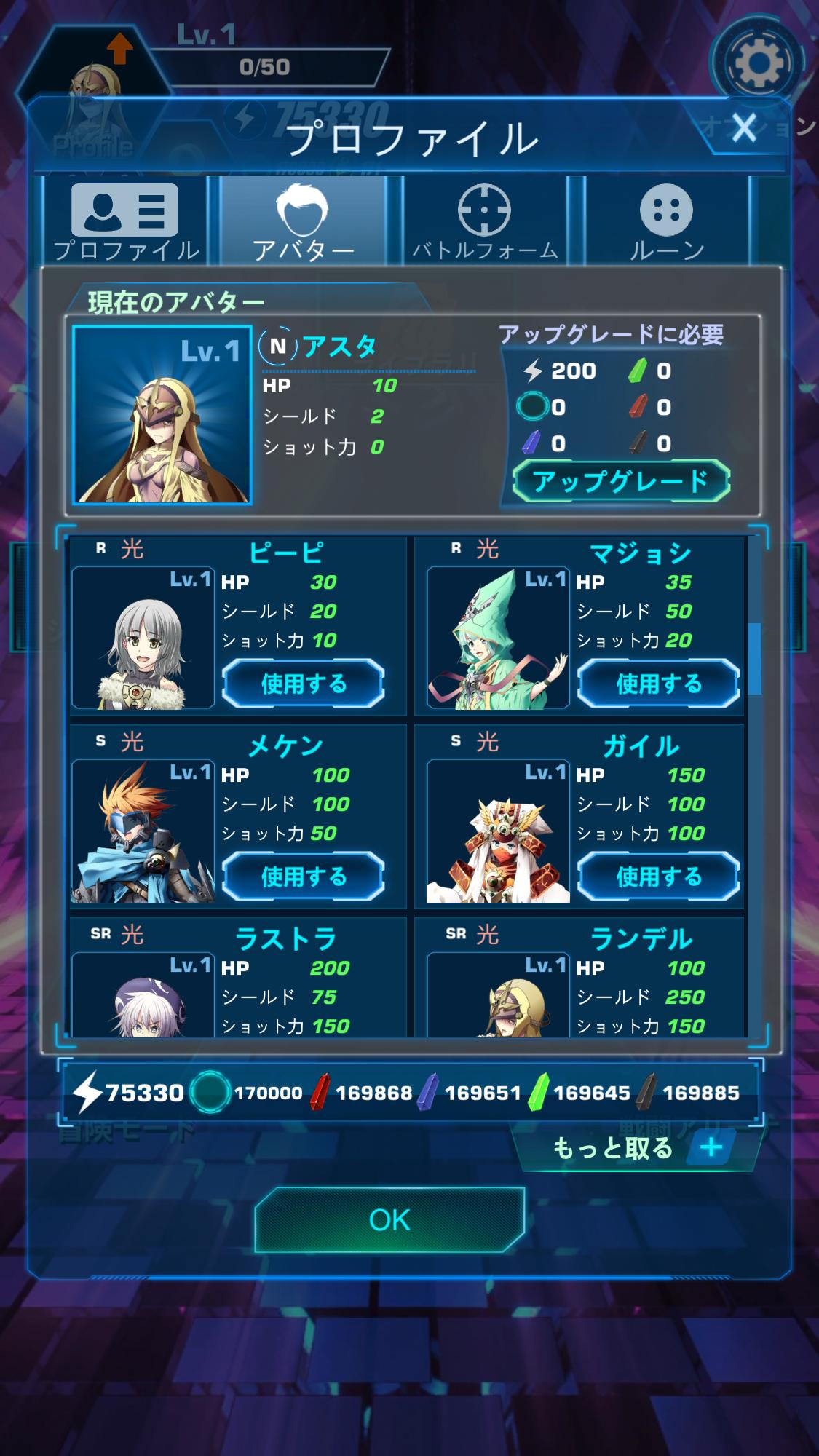 「エネルギー」、「ルーン」、「アイテム」を集めて、複数のアバターとバトルフォームを手に入れることができます。