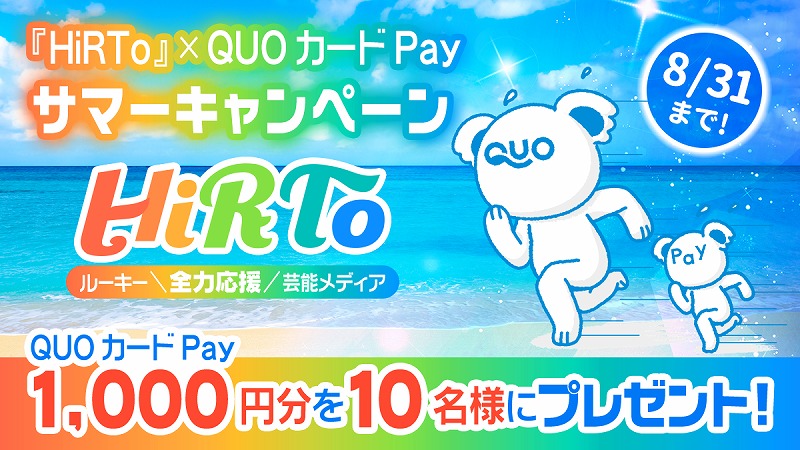◇キャンペーン内容:HiRTo公式Twitterをフォロー、該当のキャンペーンツイートをリツイートで応募完了。抽選で10名様に「QUOカードPay1,000円分」をプレゼントします。