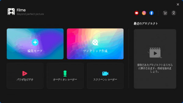 起動画面で「編集」、「ワンクリック作成」、「パワポをビデオ」、「録音」、「録画」という5大モードが分けて表示され、一目瞭然ですぐに利用できるようになります。作成したすべてメディアは自動的にソフト内で保存され、いつでも再編集できます。