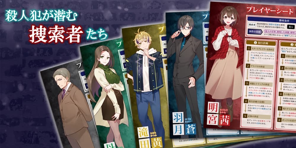 プレイヤーたちは捜索者となって館の中を捜索。証拠を集めて自分たちの中に潜む犯人を見つけ出します。時間内に犯人の正体、凶器とトリックを暴き、事件の真相を解明できれば勝利しますが、逆に隠匿しきれば犯人プレイヤーが勝利します。真相を解明/隠匿する者、勝利するのはどちらでしょうか。