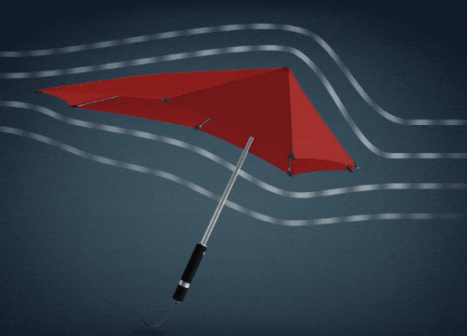 senz°は様々な悪条件下で耐久性を徹底的に試験されています。独自の非対称の形状のおかげで、senz°は風が裏返しにしようとするのに抵抗します。