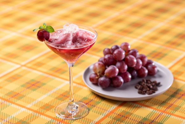 甘味と酸味のバランスが取れたスッキリとした味わいの信州ぶどうコンコードジュースとピオーネシロップに、干しぶどうの甘味を加えてフローズンにした秋の味覚を贅沢に味わうモクテルです。グラスからキラッと輝くホワイトグレープシロップのジュレと一緒に混ぜてお楽しみください。