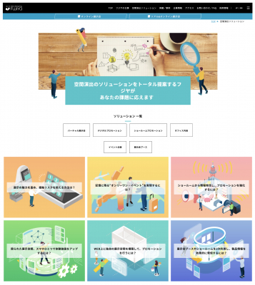 これらのサービスを顧客の課題を解決するソリューションとして整理し、広く情報発信するために開設したのがWEBサイト「空間演出ソリューション」です。