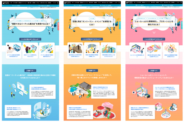 「空間演出ソリューション」は展示会やイベント、ショールームなど空間プロモーションを活用する顧客の“お悩み”にフジヤが解決策を提案するWEBサイトです。