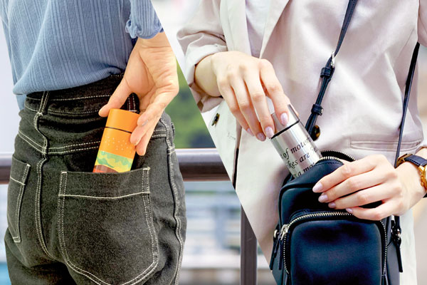 洋服のポケットにも収まるほど小さなサイズの「ポケットサーモボトル 130ml」と、バッグの中に納まりやすいすっきりサイズの「ポケットサーモボトルロング 200ml」の2種が新登場。コンパクトなサーモボトルにお好きなデザインを1周ぐるりとフルカラープリント出来ます。イニシャルや名前などを入れて、マイボトルとしての個人利用はもちろん、企業のロゴや社名を入れたノベルティや販促グッズとしてもおすすめです。
