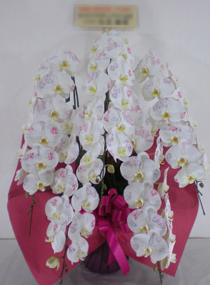 最高級の胡蝶蘭に1本1本、手作業で季節の絵柄やメッセージをお入れしています。