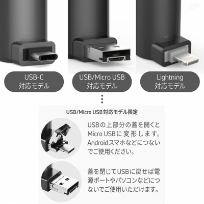 モデル:USB-C対応モデル、USB/Micro USB対応モデル、Lightning対応モデル