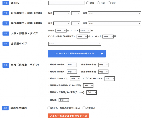 見積もり・お問い合わせフォームに関しては、これまで以上に詳細な項目を入力できるようになり、フェリー会社毎の細かいプランに沿った項目にすることでより正確でわかりやすいお見積り、回答が可能となりました。この度のリニューアルにより、手軽に且つスムーズにご予約できるようになりますので成約率の向上が見込まれます。