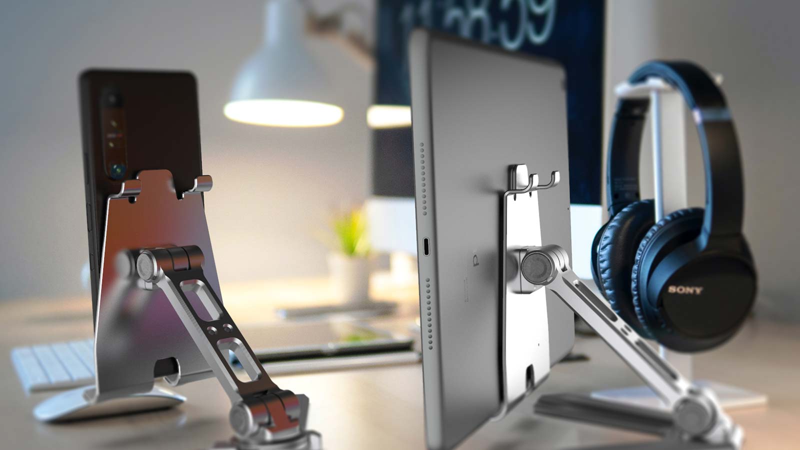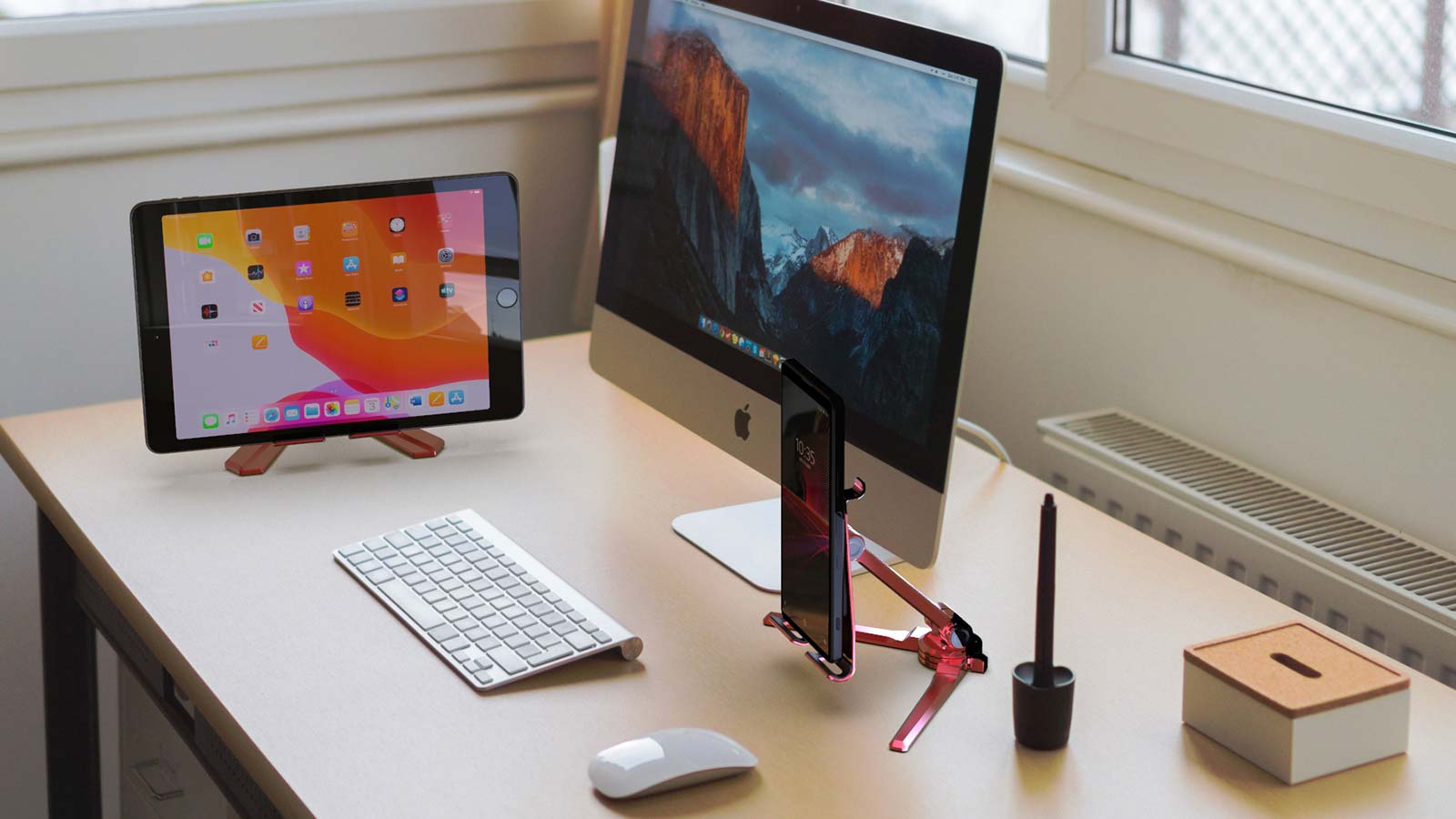 無造作にデスク上に置いていたスマホやタブレットを立てて置くことで、エレガンスかつスマートに。その利便性も向上し、テレワークのお供にも最適です。