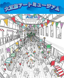 大正筋商店街にある店舗のシャッターに様々なアーティストがアートを描いていく企画です。2021年5月に参加アーティストが決定し、7月よりアートペイントが開始しています。今回は、商店街に馴染みの深いアーティスト14名が参加しています。