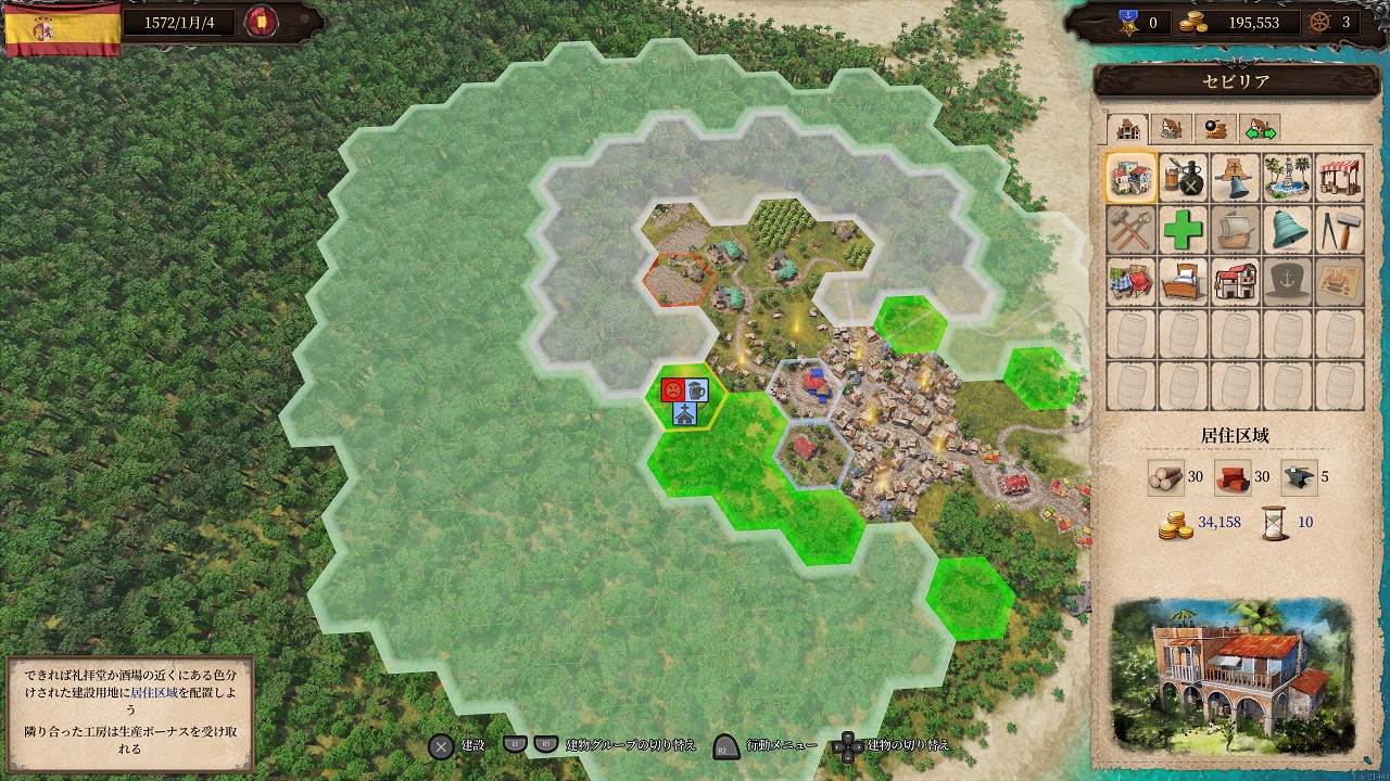 ・ 街の建物を建設することで市民の幸福度を管理し、生産性を向上