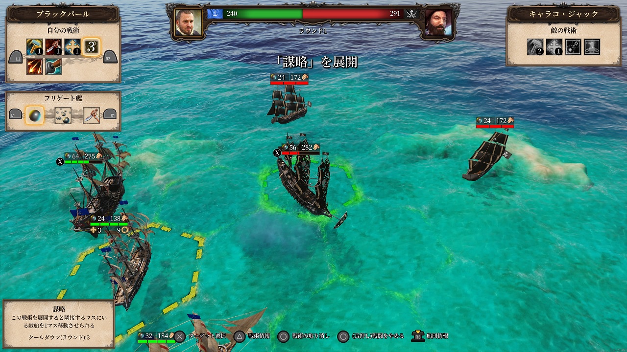 ・ 敵国や海賊と繰り広げる最大8隻vs8隻のターンベース制の手に汗握る海戦