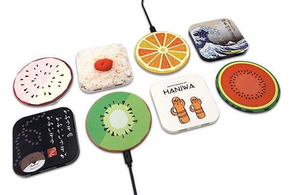 スマートフォンを置くだけで充電出来るワイヤレス充電器の表面にオリジナルのデザインをフルカラープリントできます。ワイヤレス式で、ケーブルを抜き挿しする必要がなく、スマートフォンを縦・横・斜め、色々な向きで置けるので、おやすみ前や忙しい朝にもストレスなく充電可能です。