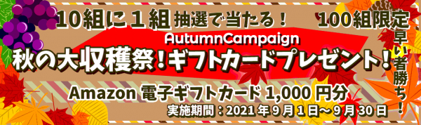 当キャンペーンは、9月1日から9月30日の期間中に「ベストワンバスツアー」にてご予約いただいたお客のうち、10組に1組抽選でAmazon電子ギフトカードが当たるキャンペーンで、100組限定、早い者勝ちとなっております。当サイトには、この時期、「シャインマスカット狩り」、「温泉」、「紅葉」等をテーマにした魅力的なバスツアーが豊富に取り揃えられております。これから始まる秋の行楽シーズンに向けて、是非、この機会にご予約ください!