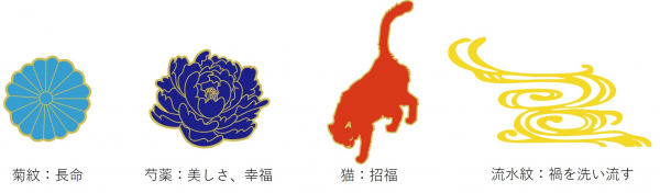 デザインのベースは、日本文化と歴史の模倣を軸とし、WELLMETHOD ブランドの立ち上げ経緯やフィロソフィーを伝えることができる要素を散りばめたデザインを目指しました。モチーフはそれぞれ大人の女性のウェルエイジングを象徴するものを選び、配置しています。