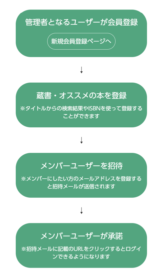 会社の休憩室に並んでいる蔵書と組織として従業員に読んでほしいお勧めの書籍、例えば、人事部が従業員に読ませたい課題図書や経営者が社内のコンセンサスを取るための書籍を登録しておくことができます。
