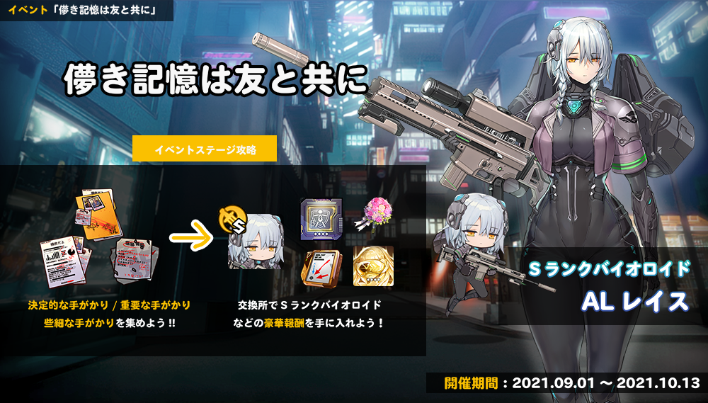 PiG Corporation(本社:韓国ソウル、以下PiG)は、好評配信中の次世代美少女×戦略RPG『ラストオリジン』において、2021年9月15日(水)より、シナリオイベント「儚き記憶は友と共に」の第2部が開始となりましたのでお知らせいたします。また、新規バイオロイド2体と新規スキン3体が追加となりましたので併せてお知らせいたします。『ラストオリジン』に、ぜひご注目ください。