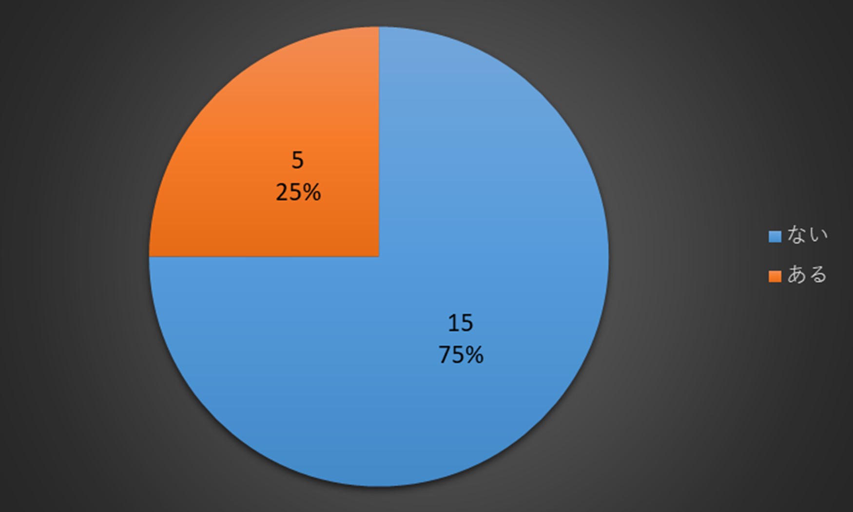 アンケートでは、ショックな経験をしたことがあると回答した人が5人(全体の25%)、ないと回答した人が15人(75%)という結果であった。
