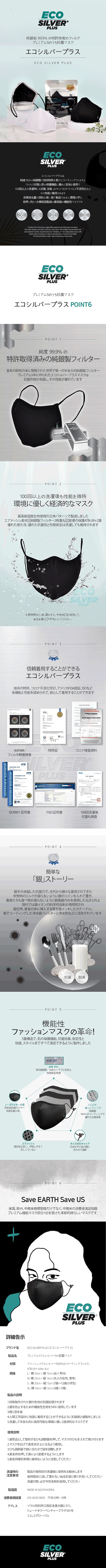 Eco silver plusは、特殊な銀コーティングフィルターを通して、650種類以上のウイルスやバクテリアを、99.9%抗菌する特許技術を適用。1回限りではなく、洗濯(100回)以降も抗菌力を維持する製品として開発され、環境を保護するトレンドにも適した製品となっている。また、該当製品はM,L,S,XSの4サイズがあり、多くの人々のニーズを満たしながら、マスクに同梱されているヒモ調節キャップで、微細なサイズ調節が可能なマスクだ。