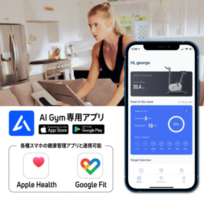 専用アプリの「AI Gym」は Apple Health や Google Fit といった各種スマホの健康管理アプリと連携させることができます。