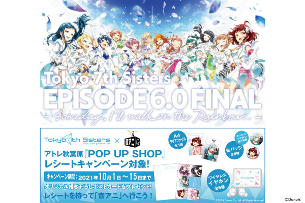 尚、10月1日~15日に秋葉原で開催する「Tokyo 7th シスターズ -EPISODE展-」※3の期間に合わせ、弊社秋葉原のONKYO DIRECT ANIME STORE(以下、音アニ)にて先行予約を行います。期間中店頭設置の専用QRコードでご予約して頂くと、描き下ろしデザイン特缶バッチをプレゼントさせて頂きます。通販サイトONKYO DIRECTでは、店舗先行予約期間最終日から受注スタートとなります。