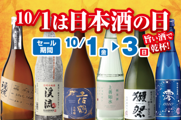 全国に182店舗で酒の専門店をチェーン展開する株式会社リカーマウンテン(本社:京都市)は、10月1日(金)~3日(日)の3日間、深夜営業店舗などを除く一部店舗で「10/1は日本酒の日 旨い酒で乾杯!セール」を開催いたします。