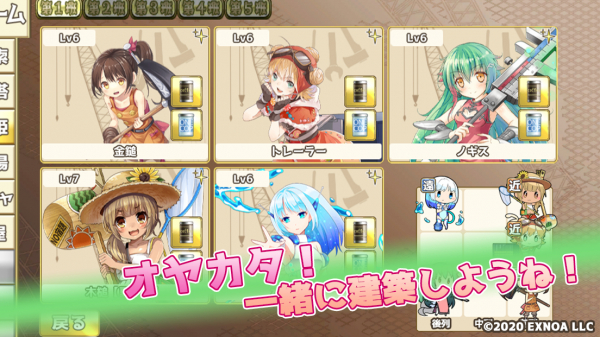 -基礎の上に「生産フロア」「備蓄フロア」「補助フロア」「施設フロア」を自由に建築し、5種類の資材を生産