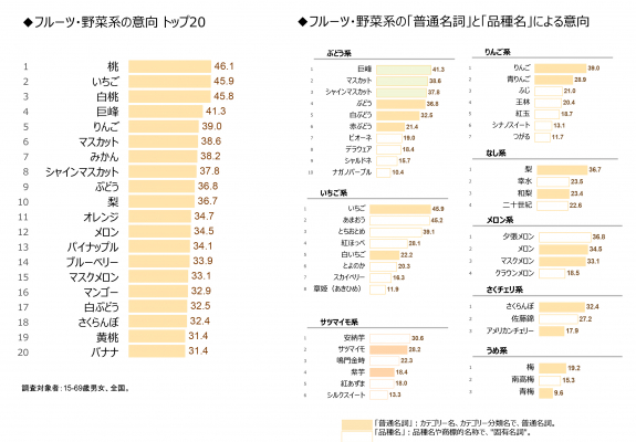 ここでは、カテゴリー名と商標名を含んだ品種名に対する消費者の意向を比較します。