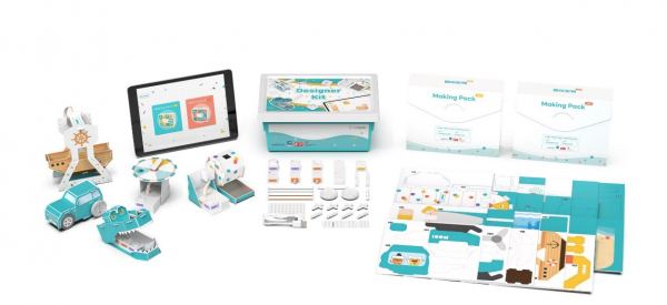 さらに、オプションのメイキングパックでは、海賊船やヘリコプターなど一箱に10種類を作って遊べる工作キットが入っており、「コードスケッチ」アプリ内のガイドでは、楽しい映像で工作からコーディングまでわかりやすく解説しながら実際のコーディングまでオールインワンで行えます。