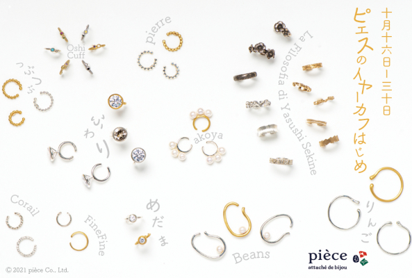 ”アタッシェ・ド・ビジュー”をコンセプトにした恵比寿南のジュエリーアトリエ&ショップ『pièce ピエス』(https://www.piecepiece.com/)を運営している株式会社ピエス(本社:東京都渋谷区 代表取締役社長:村上祐子)は、2021年10月16日(土)から30日(土)まで、「ピエスのイヤーカフ はじめ vol.0」を催します。